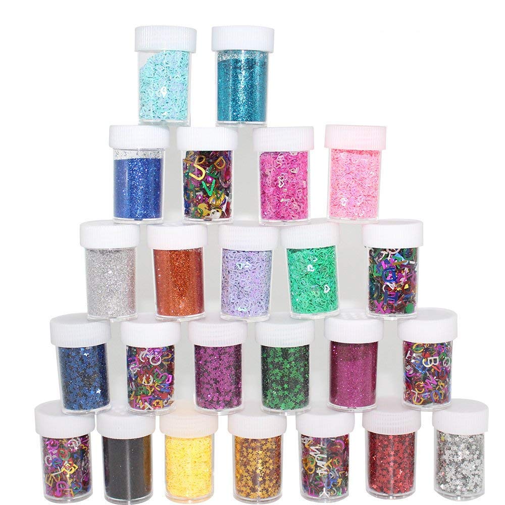 This set contains 120 glitter gel pens to let you enhance the features and details of your work. Over 1200 different types of glitter! It really creates a blank canvas for the colorful glitter paper. With a little chunks of glitter foamic pieces. 100 gold glitter stars that have a multitude of uses.